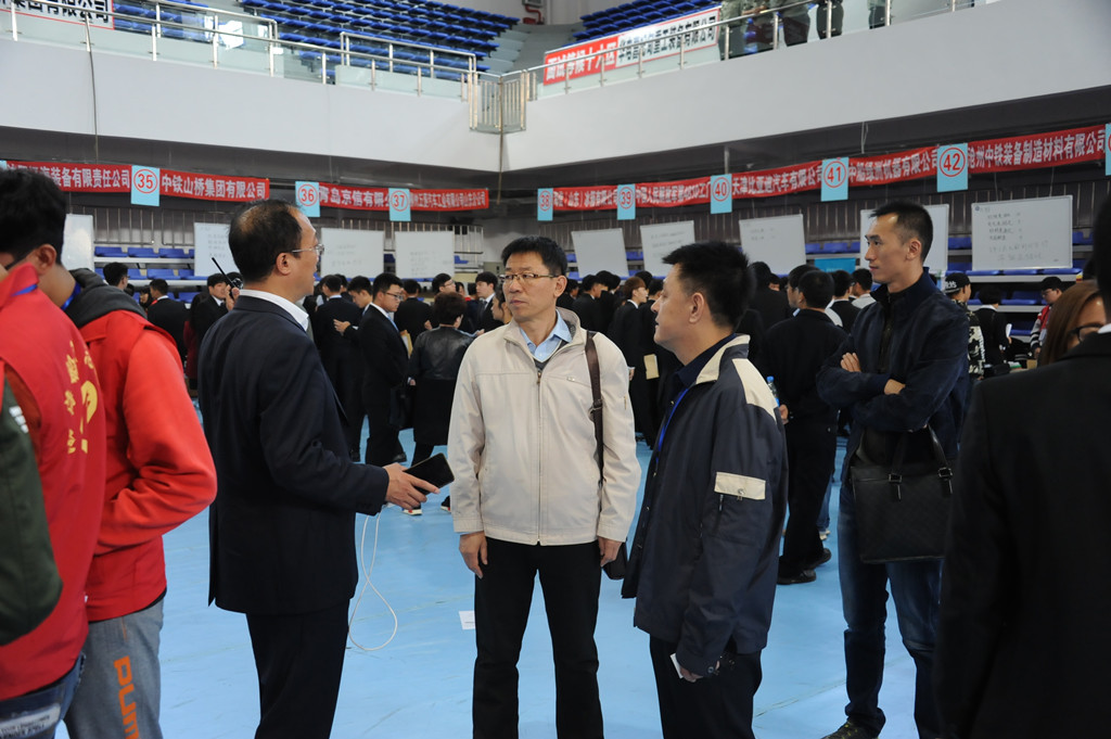 10月14日,辽宁省大学生就业局副局长王宪明、市场部长李鹏一行到我院调研指导工作,并召开座谈会,与前来我院招聘的部分企业代表就大学生就业工作进行座谈。