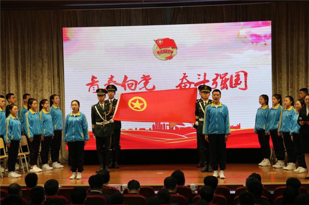 团市委书记李娇娇、副书记吕勤芳为新团员佩戴团徽并颁发团章、团员证。