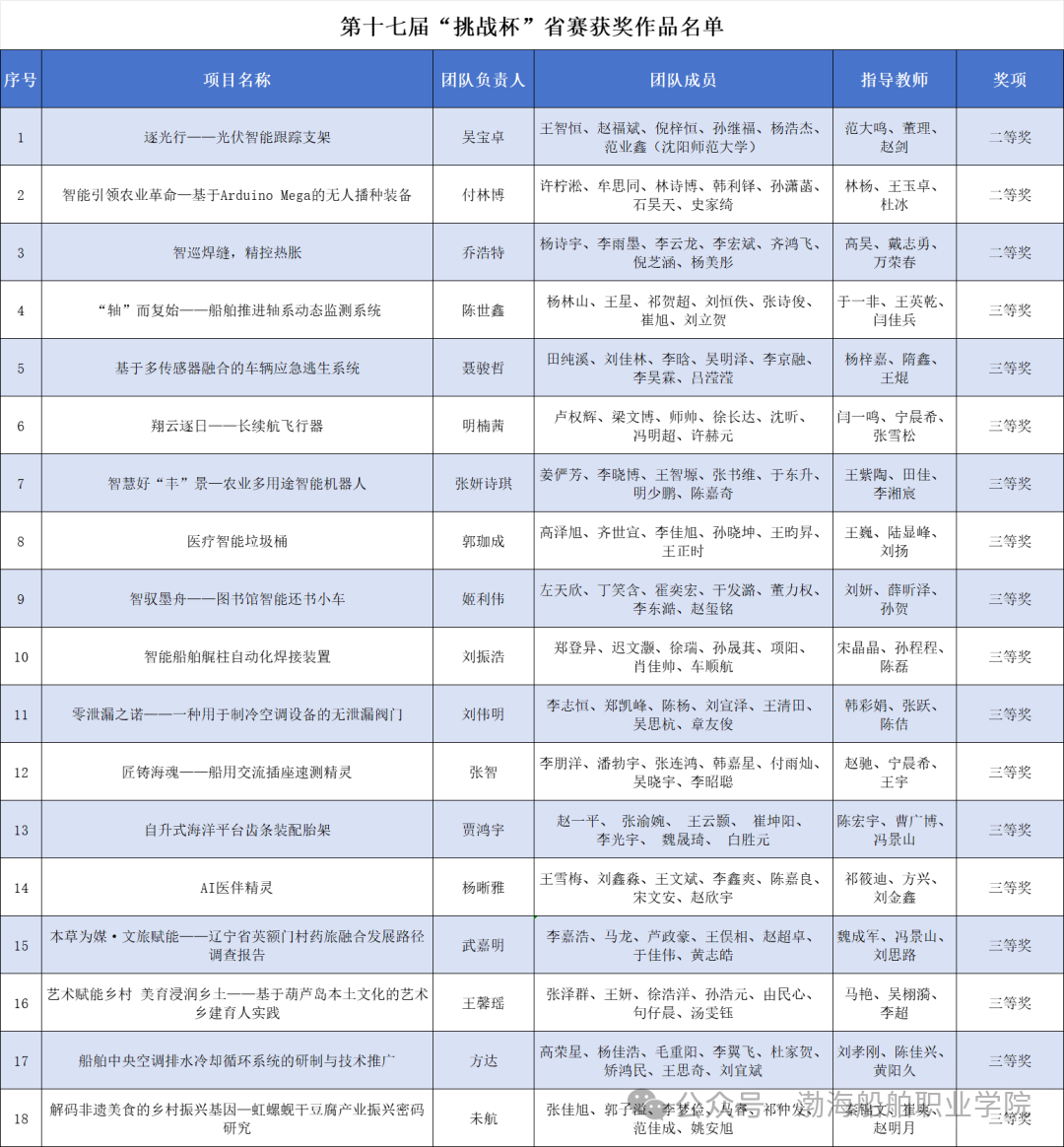 近日,由共青团辽宁省委员会、辽宁省教育厅、省科学技术厅等单位联合主办的2025年第十七届“挑战杯”辽宁省大学生课外学术科技作品竞赛成绩颁布,我校师生再创佳绩,共有18件作品荣获省级奖项,其中吴宝卓、付林博、乔浩特等同学的三项作品《逐光行——光伏智能跟踪支架》《智能引领农业革命——基于Arduino Mega的无人播种装备》《智巡焊缝,精控热胀》荣获大赛二等奖,陈世鑫、聂骏哲、明楠茜等同学的15项作品荣获大赛三等奖,电子与电气工程学院范大鸣老师、机械工程与自动化学院林杨老师、材料工程学院高昊老师荣获优秀指导教师荣誉称号。
