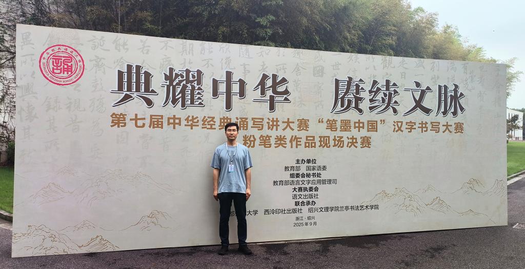 本次大赛旨在推广国家通用语言文字,弘扬中华优秀传统文化,尤其注重强化教师书写基本功与审美素养。我校工会积极组织备赛,郑雪峰老师悉心指导,黄阳久老师于省赛中脱颖而出入围国赛,最终晋级全国总决赛,与来自全国的180余名选手同场竞技,完成命题书写。